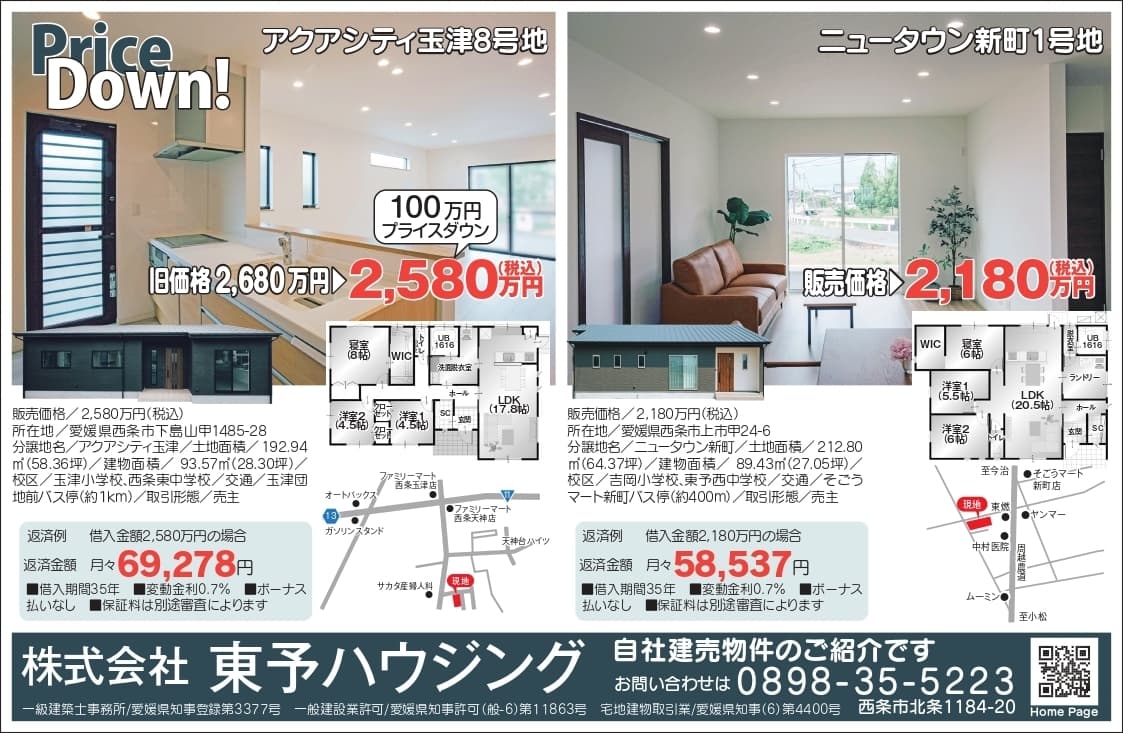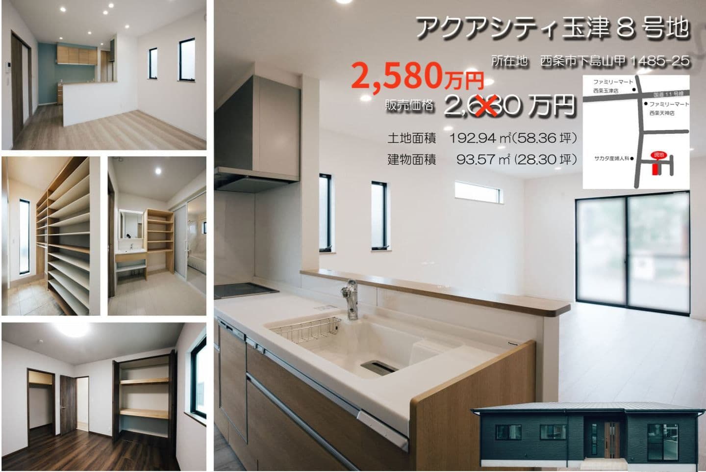 2026年1月22日 アクアシティ玉津8号地分譲住宅2,680円から2,580万円にPRICE DOWNいたしました!
